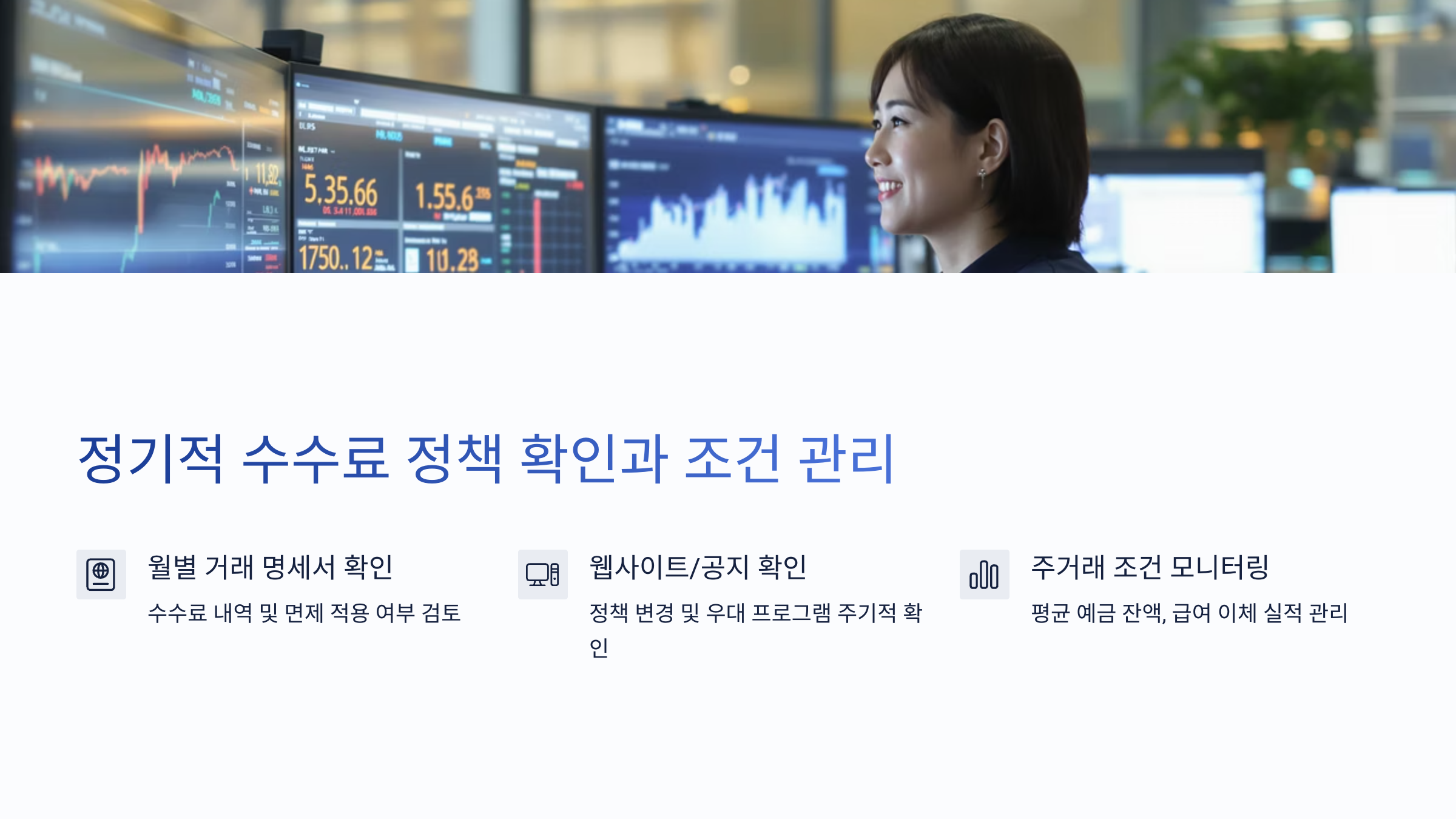 - 월별 거래 명세서 확인: 부과된 수수료 내역 및 면제 적용 여부 정밀 검토.
