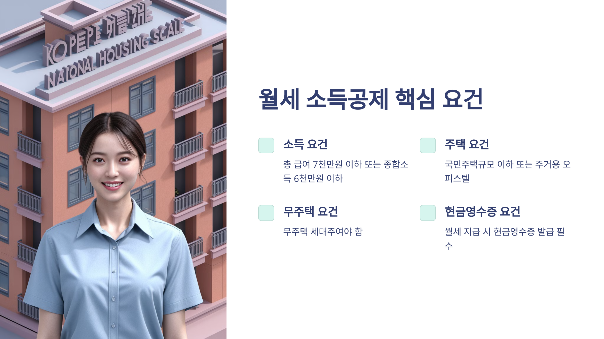 월세 현금영수증 소득공제는 누구나 받을 수 있는 혜택은 아닙니다. 몇 가지 핵심 요건을 충족해야 합니다. 세금 전문가가 알려주는 핵심 요건은 다음과 같습니다.