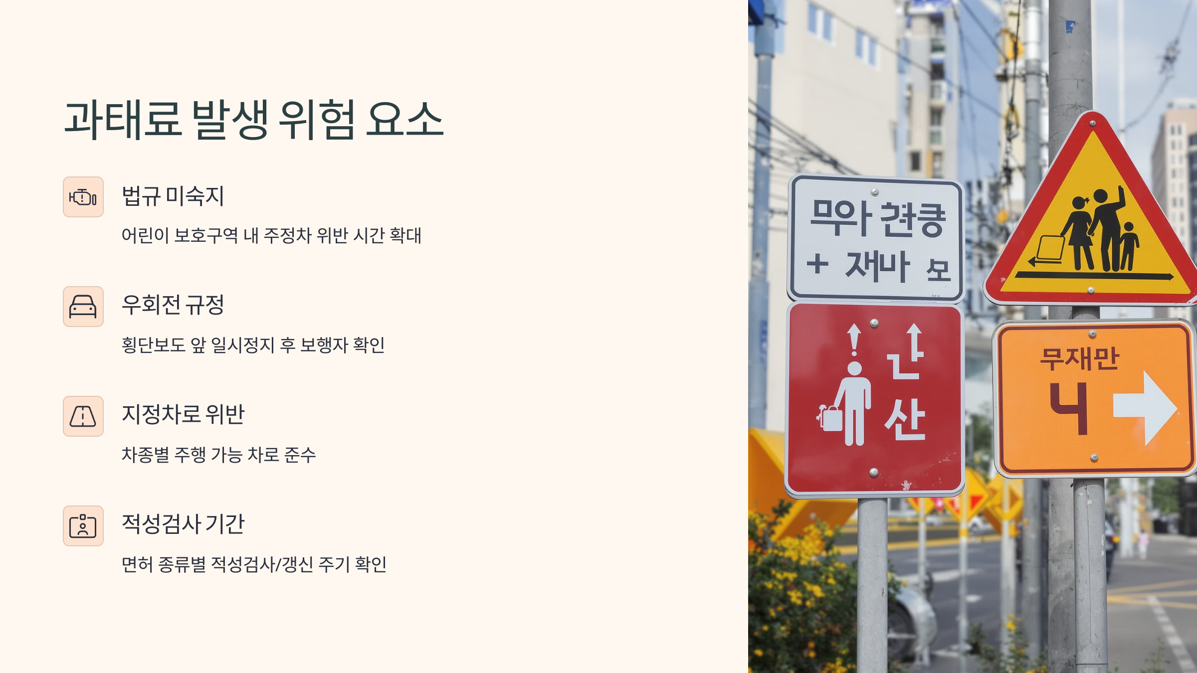 많은 운전자가 기본적인 교통법규는 숙지하고 있다고 생각하지만, 실제 단속 사례를 보면 사소한 부주의나 최근 변경된 법규에 대한 미숙지로 인해 과태료가 부과되는 경우가 많습니다. 예를 들어, 어린이 보호구역 내 주정차 위반 시간 확대, 우회전 시 보행자 보호 의무 강화, 지정차로 위반 단속 기준 변화 등은 운전자들이 쉽게 간과할 수 있는 대표적인 과태료 유발 요인입니다. 이러한 법규 변화에 둔감하거나, '나 하나쯤은 괜찮겠지'라는 안일한 생각은 예기치 않은 과태료 폭탄으로 이어져 자산 손실을 초래할 수 있습니다.