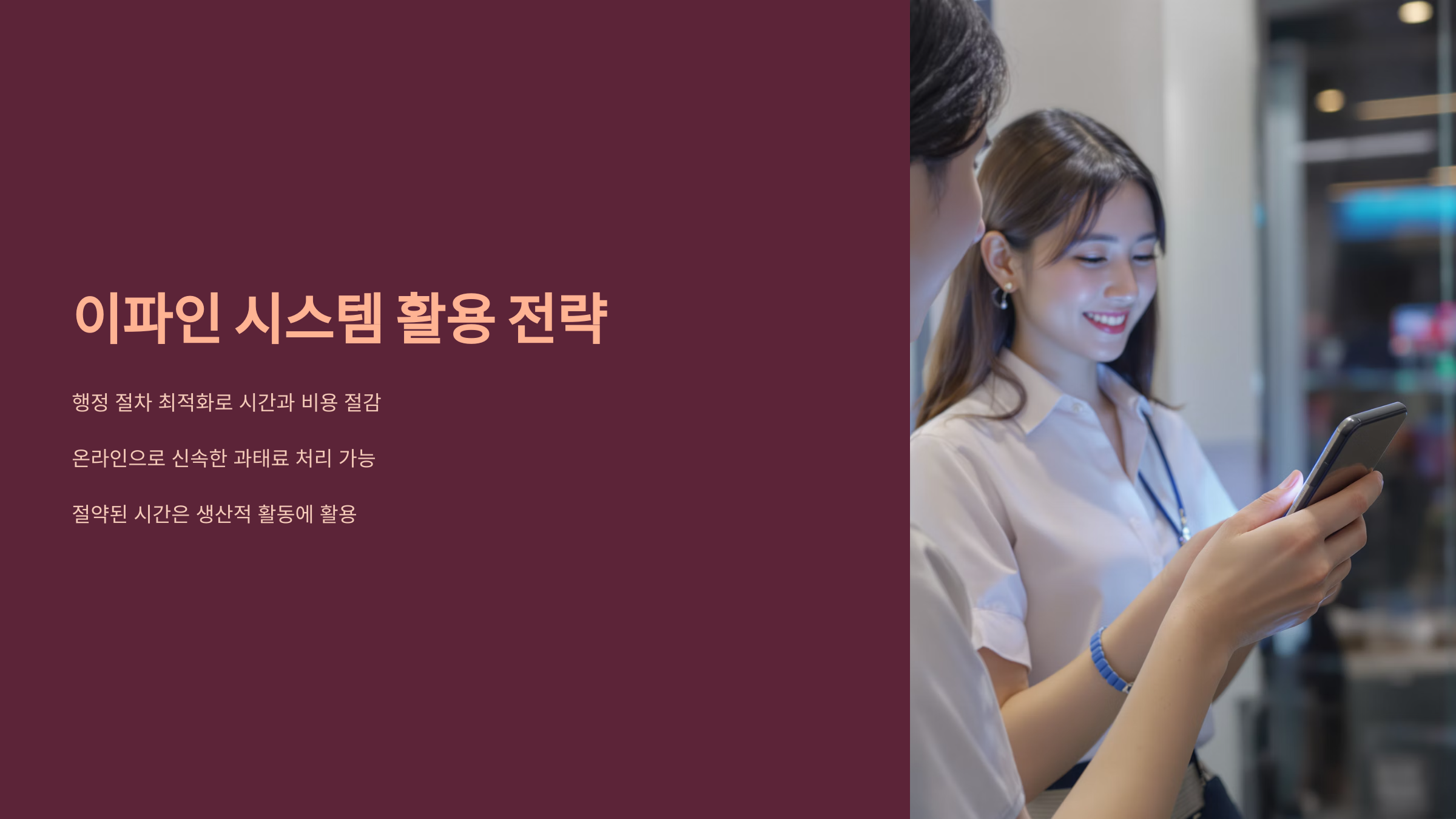 | 4단계: 납부 유예/분할납부 고려 | 일시적 경제 부담 완화를 통한 현금 흐름 관리 | 이파인으로 과태료 내역 확인 후, 관할 경찰서에 유선/방문 상담, 관련 증빙서류 제출 | 즉각적인 목돈 지출 방지, 재정 안정성 유지에 기여 |